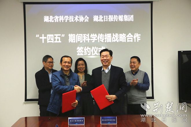 荊楚網(wǎng)客戶端—荊楚網(wǎng)消息(記者謝頤、陳雅俊 通訊員安明山)普及科學(xué)知識(shí),倡導(dǎo)科學(xué)方法,傳播科學(xué)思想,弘揚(yáng)科學(xué)精神。1月27日,湖北省科學(xué)技術(shù)協(xié)會(huì)與湖北日?qǐng)?bào)傳媒集團(tuán)簽訂“十四五”期間科學(xué)傳播戰(zhàn)略合作協(xié)議。協(xié)議明確:雙方聚焦主責(zé)主業(yè),充分發(fā)揮各自優(yōu)勢,推進(jìn)“十四五”期間全面深入合作,增強(qiáng)科學(xué)傳播的影響力和覆蓋面,為實(shí)現(xiàn)湖北省2025年公民科學(xué)素質(zhì)建設(shè)目標(biāo)提供有力支撐。