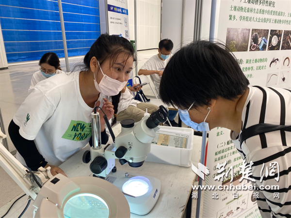 “蚯蚓是人類的好朋友?!眮碜灾锌圃何錆h植物園功能生態(tài)組的林小元正在展臺前指導市民通過顯微鏡觀察土壤和蚯蚓。她邊調試儀器邊介紹,蚯蚓是土壤動物里最常見類群之一,它們在土壤生態(tài)系統(tǒng)中既是“消費”者,也是“創(chuàng)造”者,它們通過取食、消化、排泄、分泌和挖掘洞穴等活動對土壤產生重要影響,被稱為“土壤工程師”。