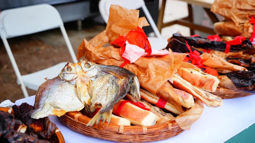 作為活動的重要組成部分,特色年貨市集“滿倉吉市”匯集了滿滿的煙火氣與本土特色。黃陂三鮮、鴨子煲、清湯鵝等地道美食香氣四溢,喚醒味蕾記憶。本地農(nóng)產(chǎn)品等特色攤位也一字排開,好不熱鬧。朝陽村的豆絲攤位前早早排起了長隊。朝陽村黨支部書記、村委會主任熊偉介紹:“今天我們準備了200斤米漿,現(xiàn)場制作近千張豆絲免費供游客品嘗,既讓大家嘗到家鄉(xiāng)味,也帶動了村里油、土雞、糯米等農(nóng)副產(chǎn)品的銷售。”