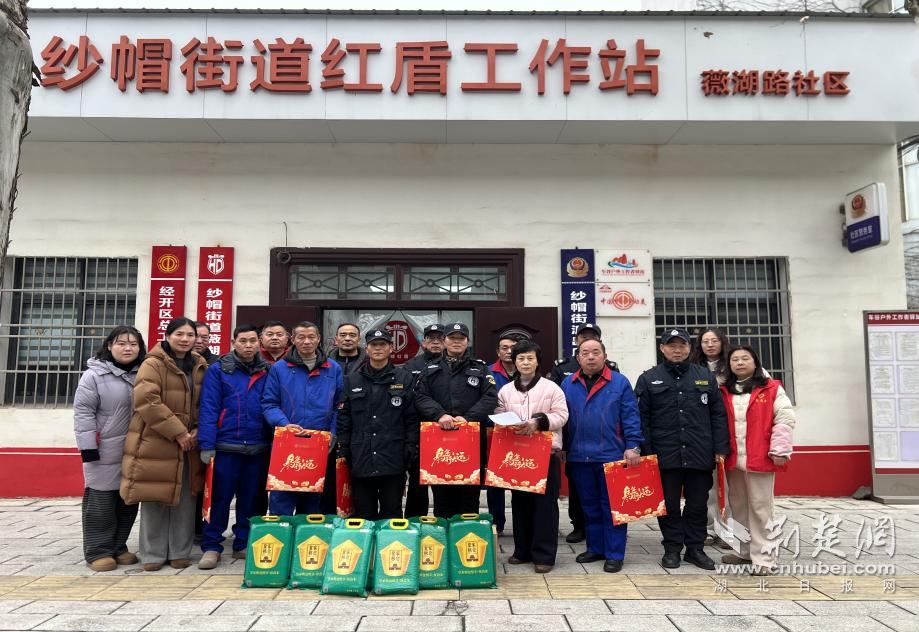 荊楚網(wǎng)(湖北日報(bào)網(wǎng))訊(通訊員吳悠琪)2月10日,武漢經(jīng)開區(qū)紗帽街道薇湖路社區(qū)工會驛站開展春節(jié)慰問、新春送暖活動(dòng),為轄區(qū)內(nèi)保安、保潔等新業(yè)態(tài)從業(yè)人員送上大米、春聯(lián)等慰問品,向節(jié)日期間堅(jiān)守崗位的一線工作人員送上新春問候。